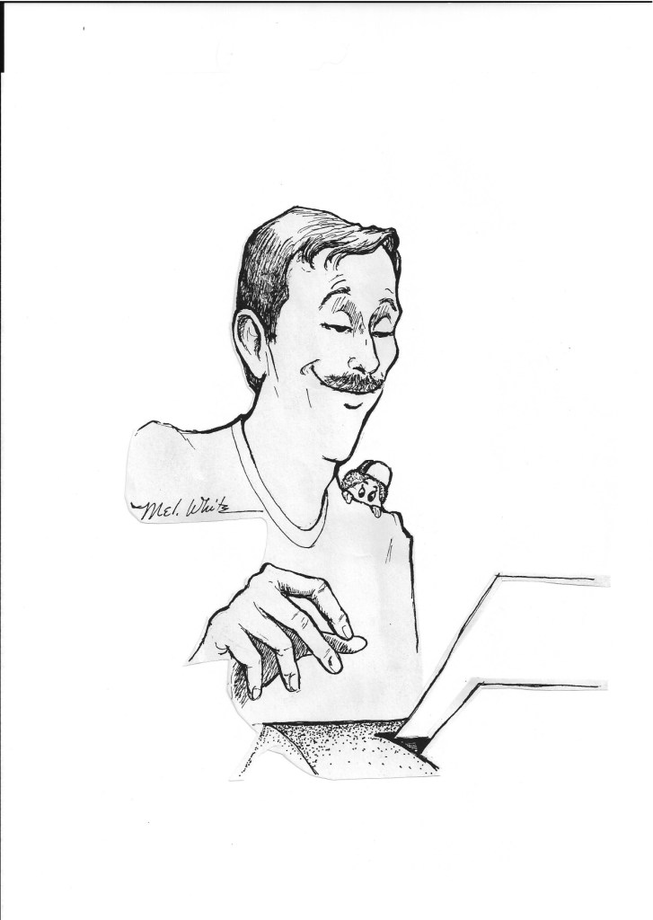 | Cartoon of me by Mel White, done at OKON in the early ’80’s — the hair is thinner but the goofy grin is the same… |